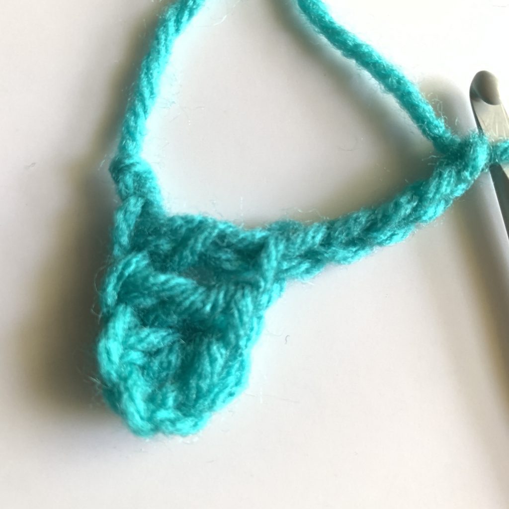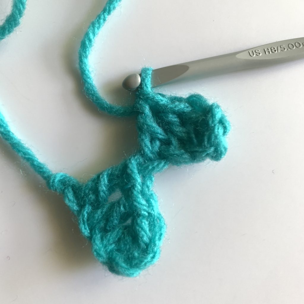 Make a double crochet on 4th chain from hook and then make two more in the next two chains